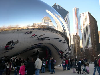 Cloud Gate, elliptical sculpture by British artist Anish Kapoor in Millenium Park